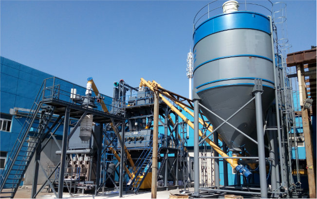 2016年12月,天津客戶采購山推建友1套SjGZD040-3G型干混砂漿站成功應(yīng)用,用于預(yù)拌干混砂漿生產(chǎn)線。該設(shè)備砂倉置于主樓設(shè)備頂部,粉料倉置于主樓旁邊,計量系統(tǒng)位于攪拌機上邊,計量完成后物料直接卸入攪拌機,具有占地面積小、生產(chǎn)率高、節(jié)能環(huán)保、等特點,適合精細干混砂漿的生產(chǎn)。
