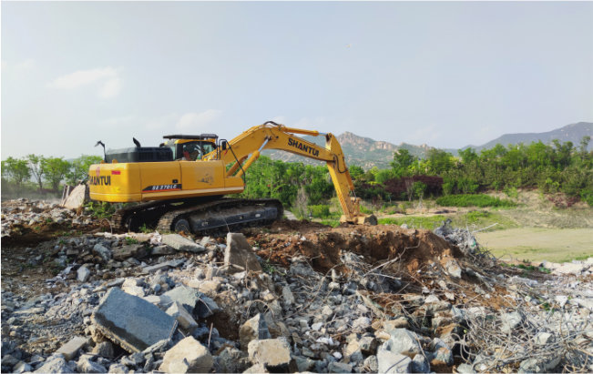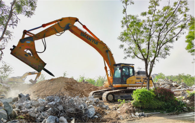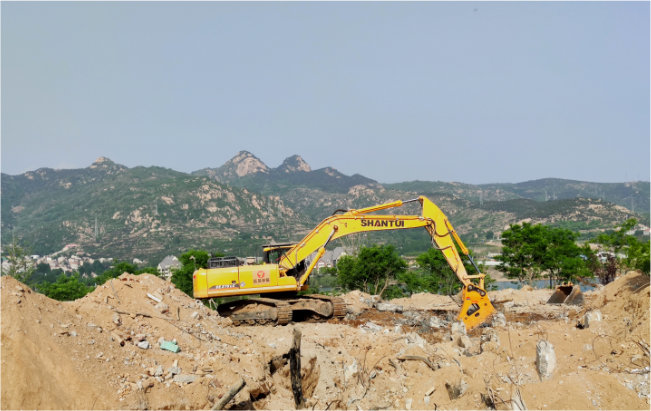 山東某地違章建筑群拆除施工,施工工期短、進度急,二十四小時連續(xù)作業(yè),山推數(shù)臺挖掘機參與施工。多種品牌挖掘機同臺作業(yè),山推挖掘機機以動力足、質(zhì)量好、效率高、故障率低得到施工方認(rèn)可。