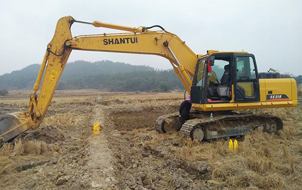 江西省XX縣農(nóng)田改造工地,肖老板是山推挖掘機的新客戶,該機工作了968小時,獲得了用戶的高度稱贊,山推SE215-9動力強勁、高效節(jié)能、反應(yīng)靈敏、操作舒適、保養(yǎng)簡單成本低等,下一步還會將山推挖掘機推薦給身邊朋友。