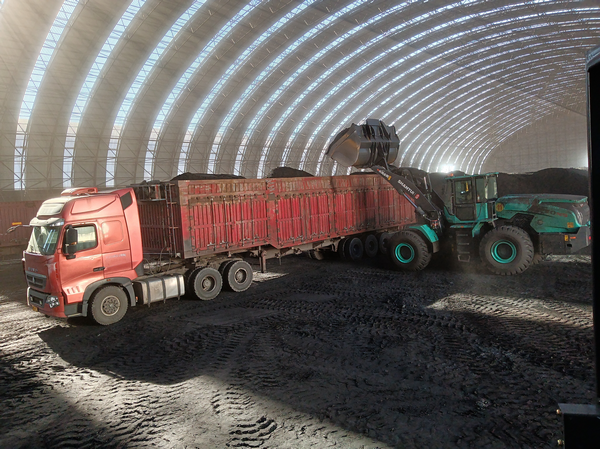 該樞紐距蒙古國(guó)納林蘇海煤礦僅100公里,4座原煤棚、1座配煤棚及多座專(zhuān)用煤棚構(gòu)成了立體化能源中轉(zhuǎn)網(wǎng)絡(luò)。每天海量進(jìn)口煤炭經(jīng)吊卸、堆存后發(fā)往國(guó)內(nèi)各地,高強(qiáng)度的作業(yè)節(jié)奏,對(duì)裝卸設(shè)備的效率與連續(xù)工況適應(yīng)性提出了極致要求。2023年項(xiàng)目啟動(dòng)之初,各類(lèi)工程裝備陸續(xù)集結(jié),隨著作業(yè)量持續(xù)攀升,兼具強(qiáng)勁動(dòng)力與節(jié)能優(yōu)勢(shì)的純電裝載機(jī),逐漸成為破解效率瓶頸的剛需之選。