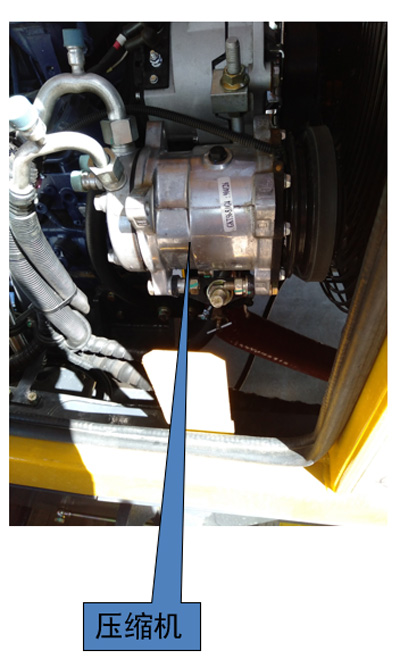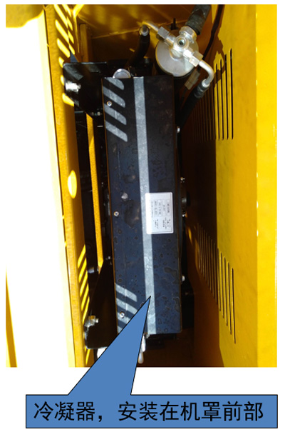 檢查冷凝器表面及冷凝器與發(fā)動機水箱之間(停機檢查)是否有碎片、雜物、泥污,并進行清理和用水清洗。冷凝器可用長毛刷沾水輕輕刷洗,千萬不要用高壓水沖洗。裝載機在煤場、木材場、土方等環(huán)境,經(jīng)常導致冷凝器散熱片堵塞,要求冷凝器表面經(jīng)常清洗。檢查冷凝器表面有無脫漆,注意及時補漆,以免銹蝕。檢查冷凝器表面及管接頭處(包括儲液器接頭處)有無油跡,若有,判斷是否有制冷劑泄漏。沿著制冷劑流動的方向,用手摸著,若同一管道存在明顯溫差,此處存在堵塞,也可通過歧管壓力表,若表壓指示高壓高或極高,說明高壓管道有堵塞。